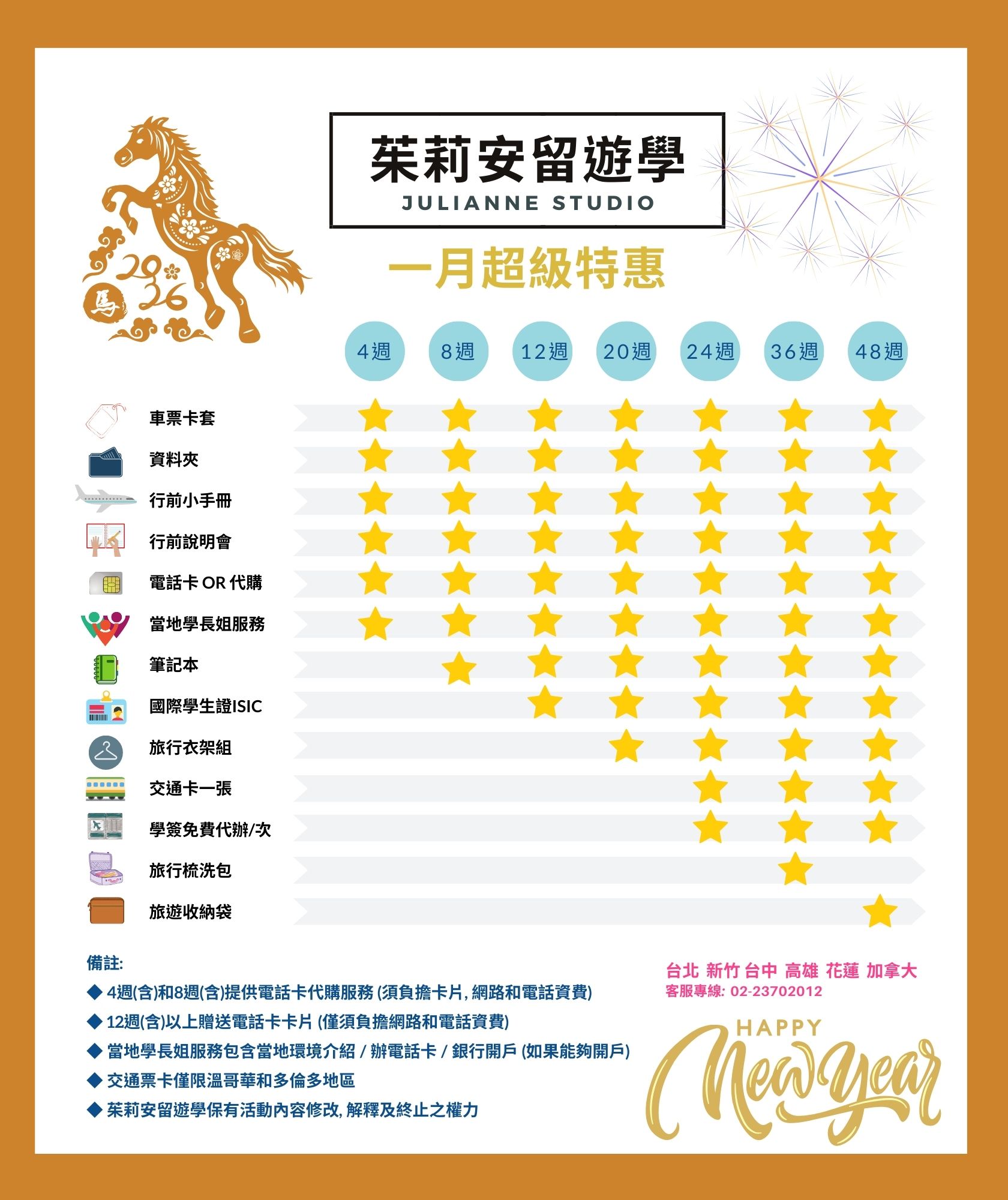 為了慶祝我們老大茱莉安回來了,我們決定延續特惠! 提供史上最多好禮,雖然不一定送最大,但一定是最有心意的,加上免費的當地學長姐貼心服務🥰, 無價!!!! 快來成為我們JS愛生喔!
