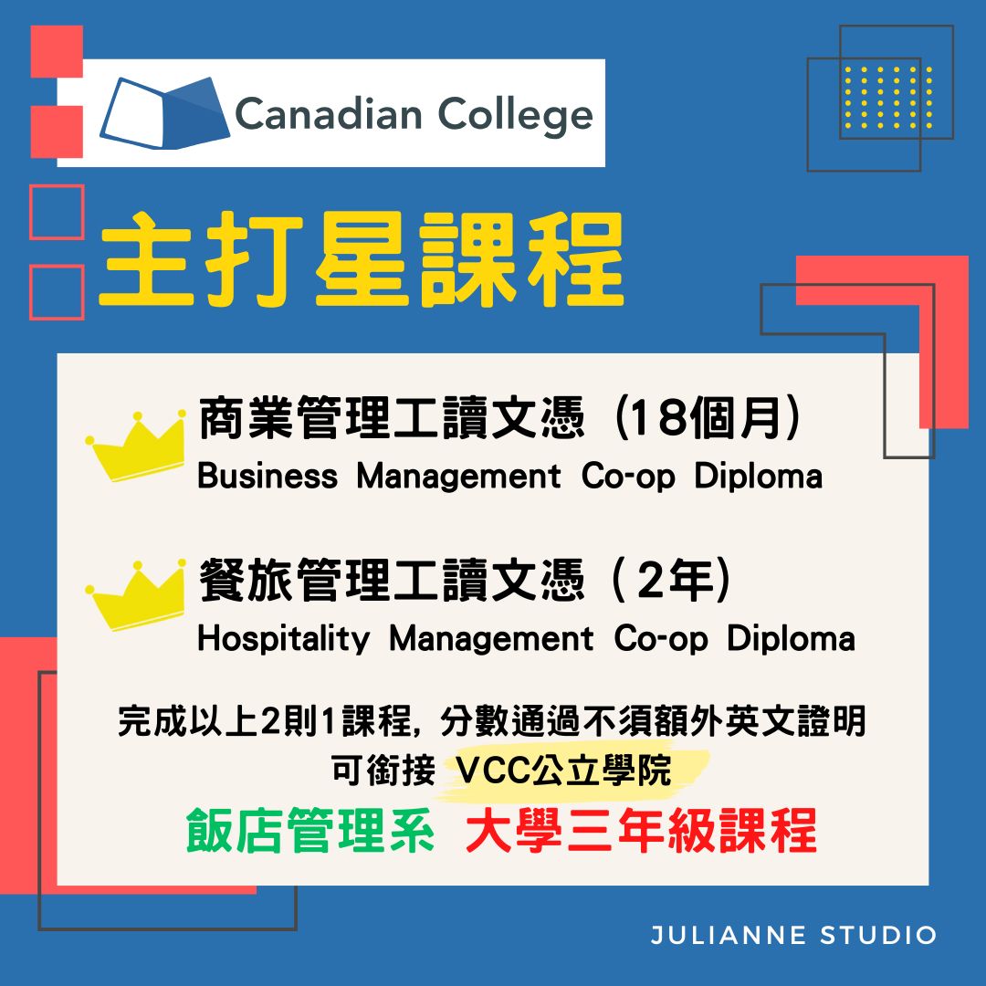 Canadian College的商管、國貿、媒體行銷 Co-op課程在業界也非常有名氣,無論日後想繼續升學或工作都很有幫助喔!