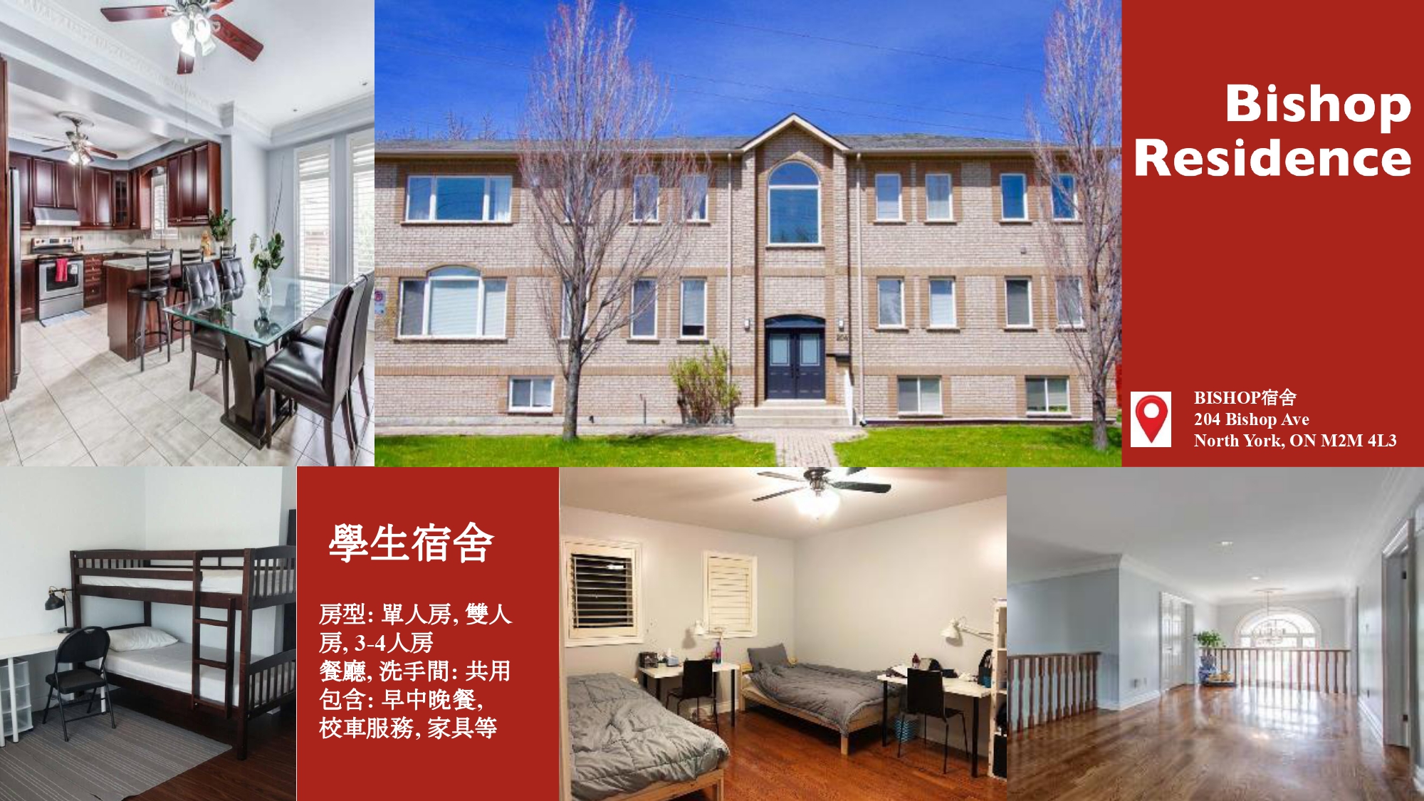 憑藉其靠近主要道路、購物中心、超市、咖啡店和塞內卡學院的黃金地段,它是學生回家的理想場所。就像我們的 Bishop Residence 一樣,校車服務和膳食計劃也包括在內。